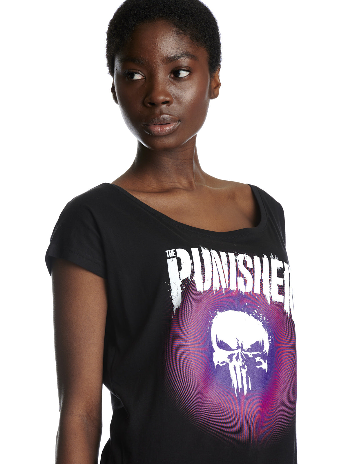 Der coole Druck zeigt das Logo des Punisher, sowie den passenden Schriftug. um den verlaufenen Totenschädel sind pinke Linien, die nach außen immer dicker werden. So bekommt der Druck eine weibliche Note, ohne kitschig zu wirken. Ein wirklich tolles Shirt für alle Fans von Frank Castle.