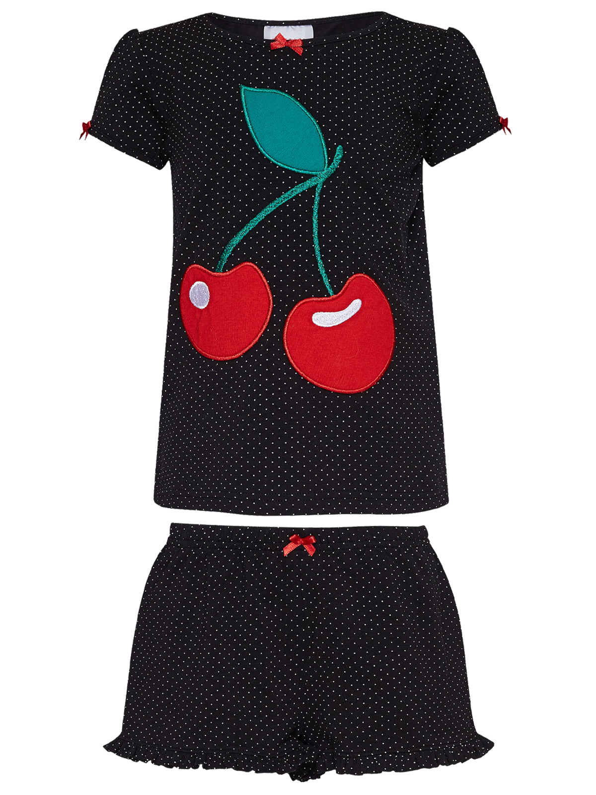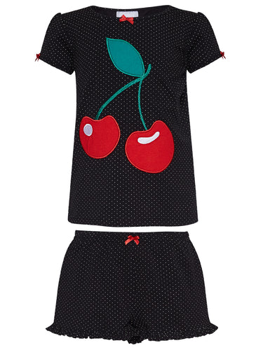 Pussy Deluxe Dotties & Cherry Girl Kinder Schlafanzug schwarz allover