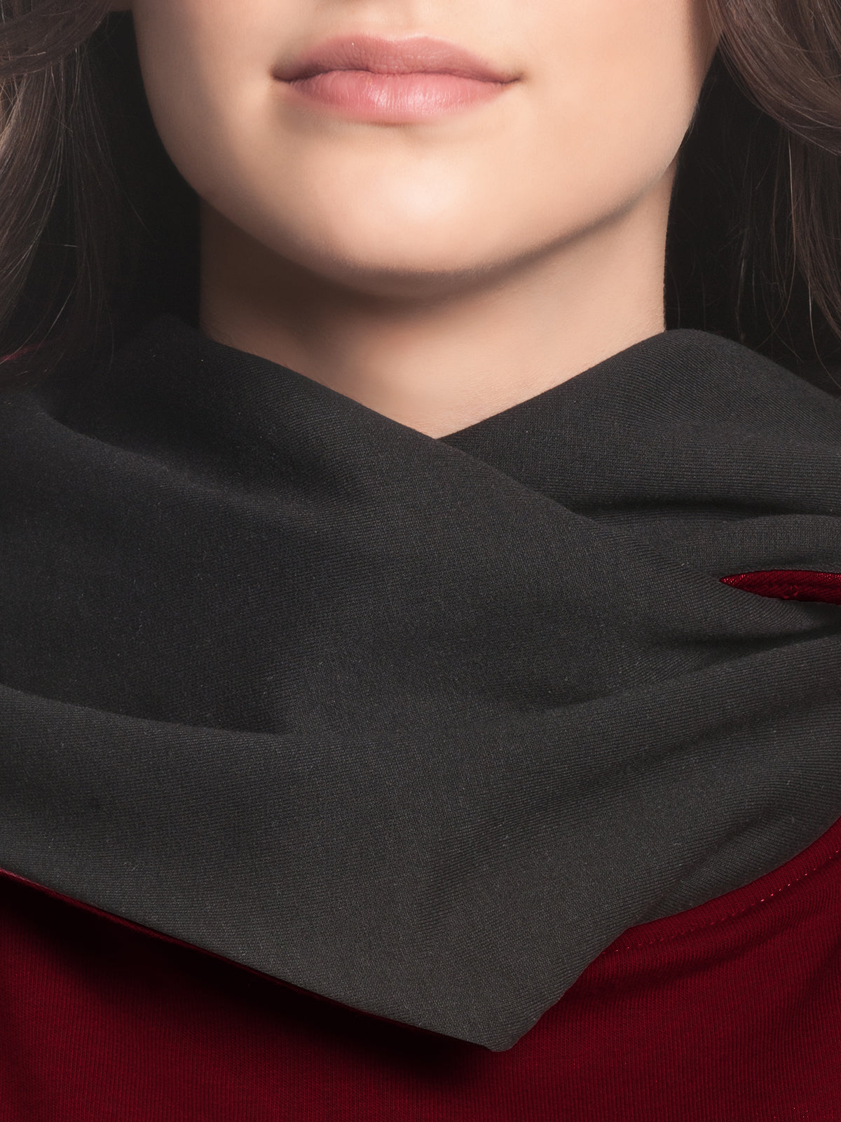 Pussy Deluxe Logo Damen Schalkragenpullover rot/schwarz