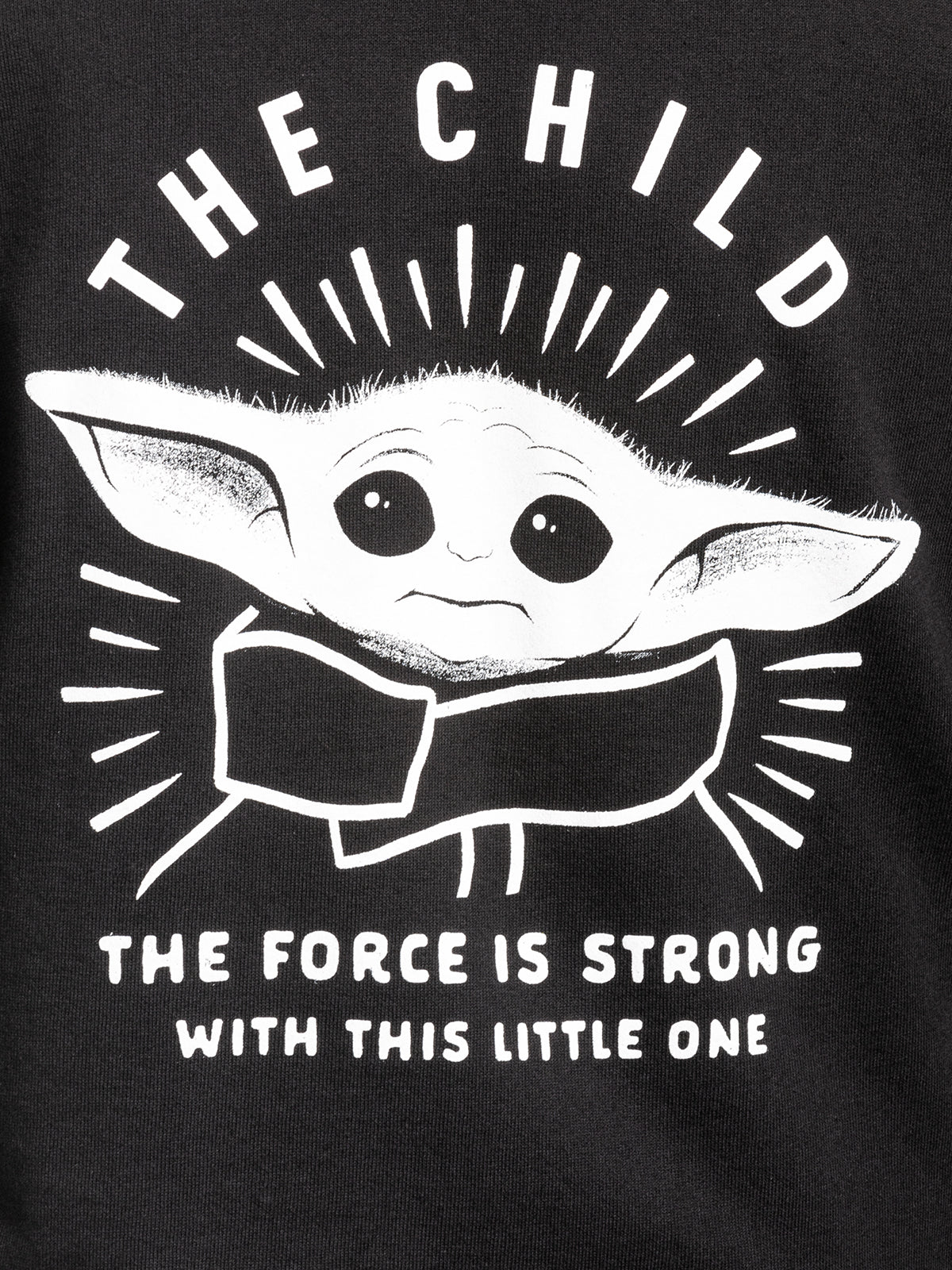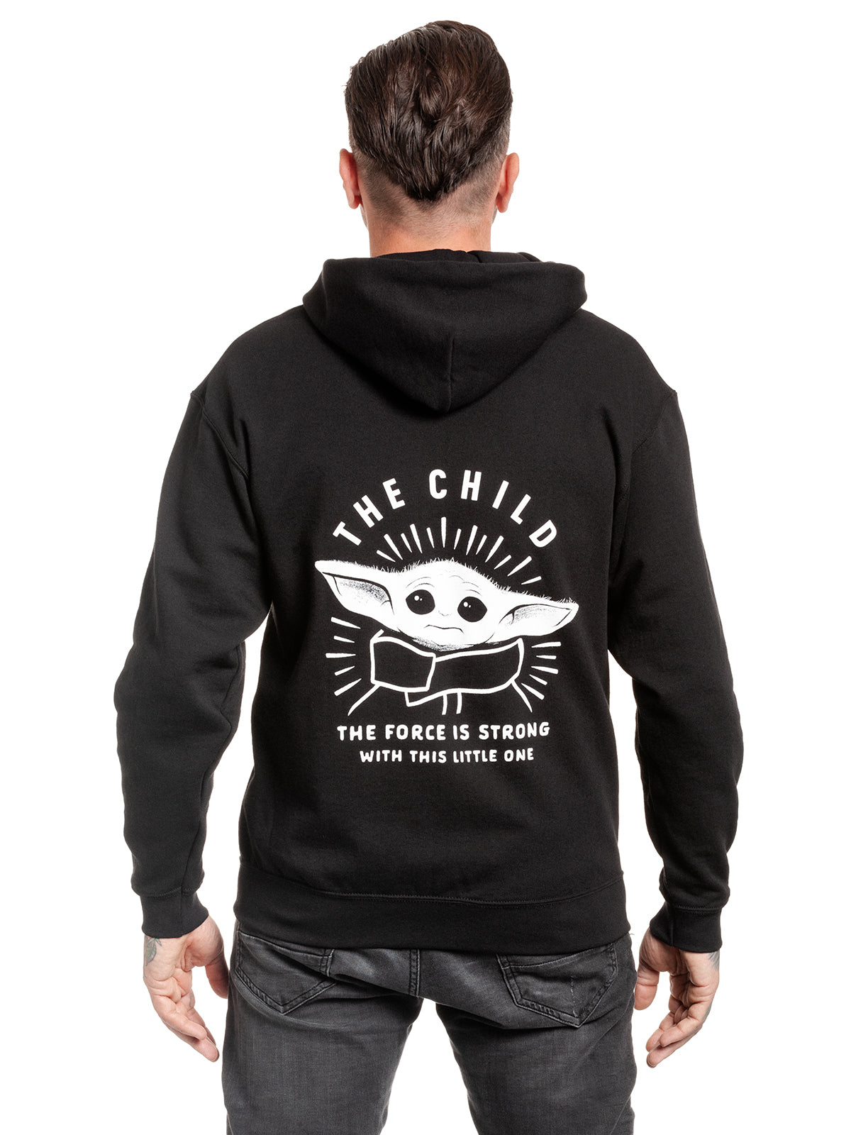 Der Aufdruck zeigt einen kleinen Baby Yoda sowie den Zusatz 'The Child. Star Wars' im linken Brustbereich. Über den kompletten Rücken ist ebenfalls noch mal Baby Yoda sowie der Schriftzug 'the Child. The force is strong with this little one' was so viel bedeutet wie 'Das Kind. Die Macht ist stark mit diesem kleinen'. Ein absolut supercooler Hoodie für alle die Gefallen an diesem kleinen grünen Ding und seinem Freund dem Kopfgeldjäger gefunden haben.